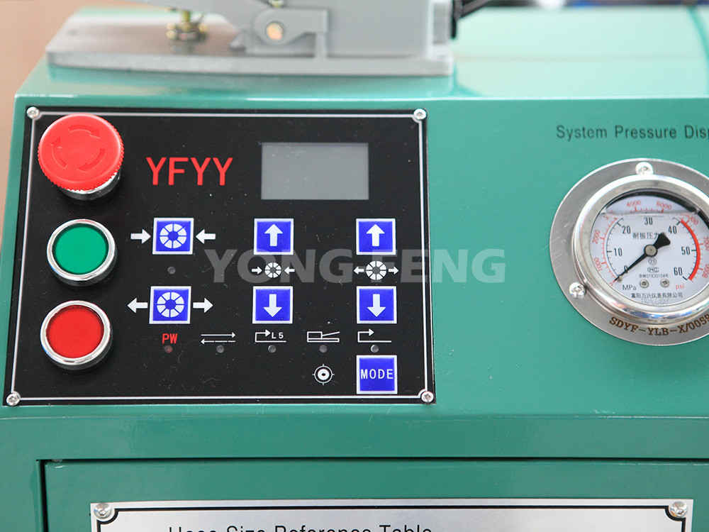 從液壓油管扣壓參數(shù)表中查得Ф19mm四層鋼絲膠管接頭外套外徑扣壓前為37mm,扣壓后為33.5mm,應(yīng)選用的模具內(nèi)徑為Ф33mm,對(duì)應(yīng)千分尺刻度為3。安裝好Ф33mm模具于模座上,并將千分尺刻度旋至3處,將膠管剝皮后與接頭組裝好??蹓和戤吅鬁y(cè)量接頭外套外徑就是扣壓參數(shù)表的扣壓后數(shù)值33.5mm,則完成扣壓。如扣壓后外徑不符,微調(diào)千分尺后扣壓下一根膠管。扣壓膠管接頭時(shí):扣壓尺寸過多,膠管內(nèi)膠層被壓斷,造成漏油;扣壓尺寸太少,造成漏油和被油壓沖脫接頭。務(wù)必掌握合理扣壓度,以接頭芯子內(nèi)孔收縮度為準(zhǔn),國(guó)標(biāo)接頭受壓縮小0.1~0.4mm,普通接頭受壓縮小0.1~2mm。因膠管及接頭外套的生產(chǎn)廠家不同,如北方大多數(shù)膠管生產(chǎn)廠用GB標(biāo)準(zhǔn),南方用602標(biāo)準(zhǔn),國(guó)外SAE標(biāo)準(zhǔn),各廠膠管、接頭的具體尺寸、材質(zhì)可能不盡相同,因此扣壓參數(shù)表數(shù)據(jù)僅供參考,具體扣壓尺寸應(yīng)以壓力實(shí)驗(yàn)為依據(jù)。